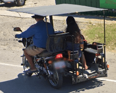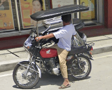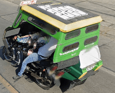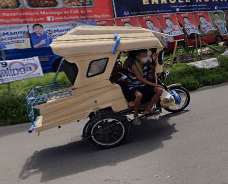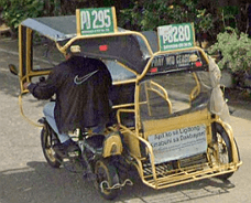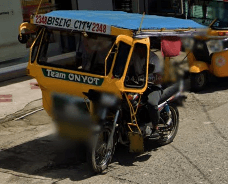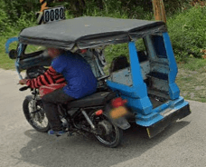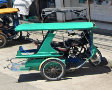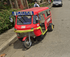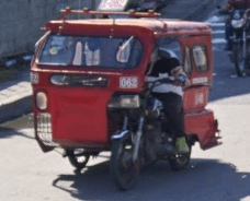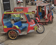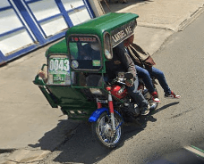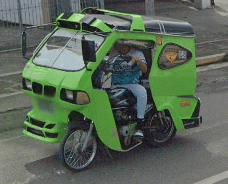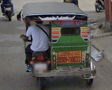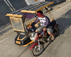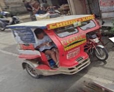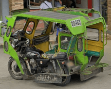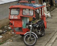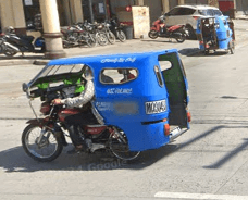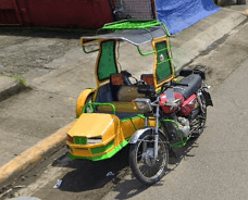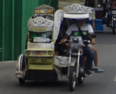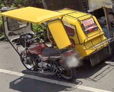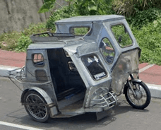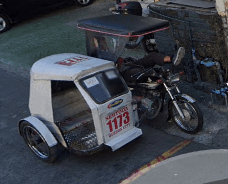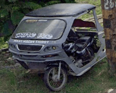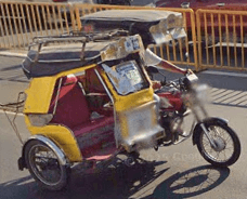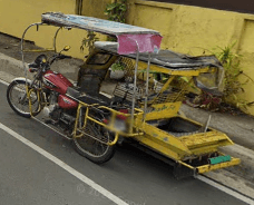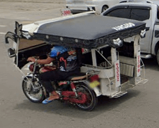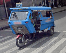 Trikes are similar to tuk tuks. An example of a tuk tuk is shown below. Tuk tuks can be found in many places around the world and appear in many places in the Philippines (especially in Mindanao), but tuk tuks are usually manufactured in China or India and don't exhibit as much variability in style, so they will be ignored here. Also, in the Philippines there are trikes which use bicycles instead of motorcyles, and these will also be ignored here.